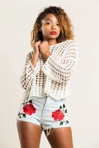 Rose Embroidered denim shorts