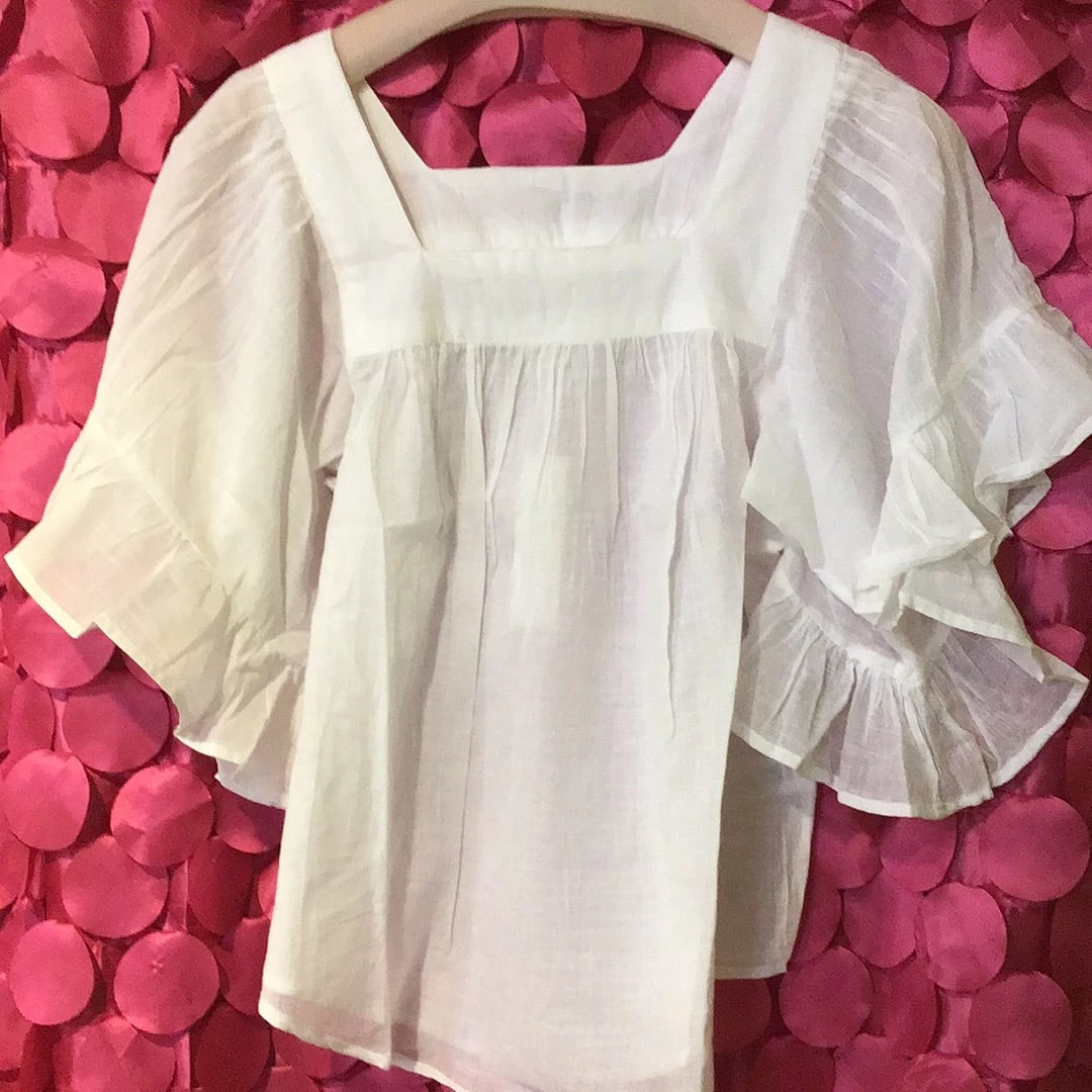 SKU: beachlunchlounge-6767037284425 Category: TOPS Tags: 100% cotton, Blouse, Ruffle sleeve, Top, WHITE, White top
