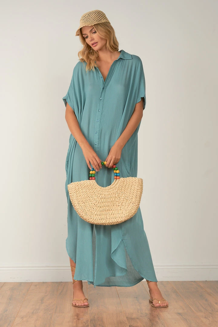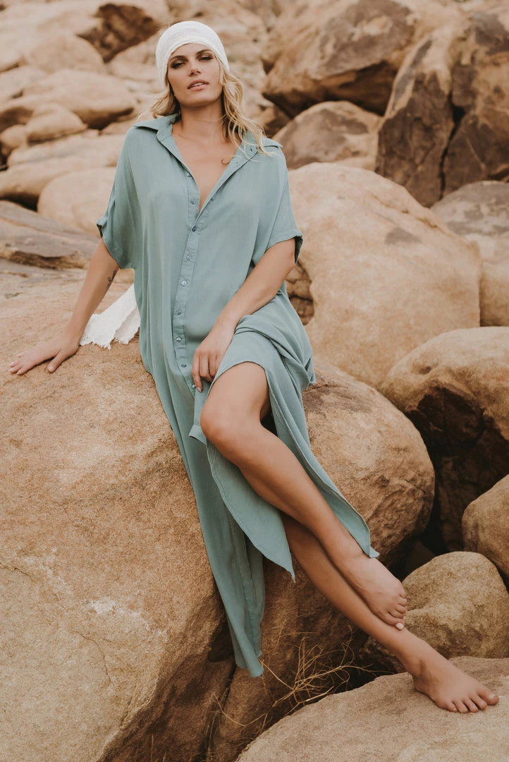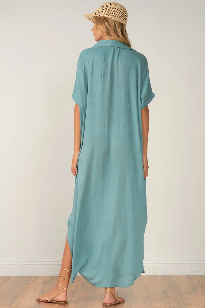 This incredible button down maxi has a collar and it so versatile yet stylish! High slits and short sleeves round this sexy and chic maxi dress, cover up or how ever you choose to showsawe this!