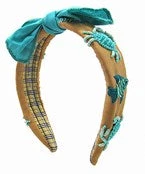 TURQUOISE AND GOLD HEADBAND WITH BEADED SEA CREATURES ON THE BAND.