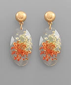 TWOTONE DRIED FLOWER LIGHTWEIGHT RESIN OVAL EARRING