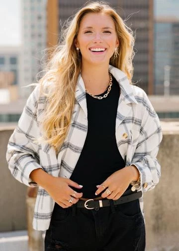 Simple yet cute black and white plaid flannel jacket.