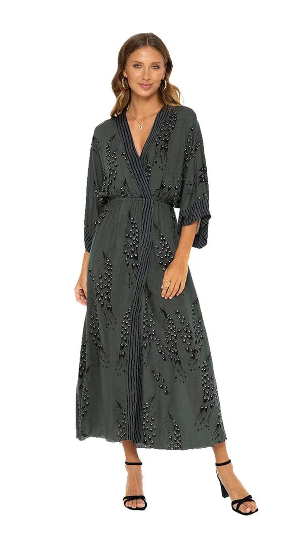 Our effortless chic Bell Sleeve Roxanne Maxi Dress is what you wear from breakfast and errands until dancing and drinks. It’s the ultimate transitional dress as it has stylish bell sleeves, an empire waist, and a slit in the center for style and comfort all day. Plus, its color goes with any accessories and shoes you wear it with.