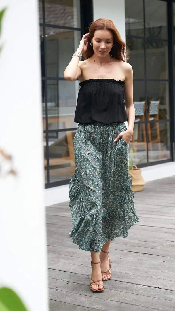 SKU: khush-6594910453833 Category: SKIRTS Tags: HEM, HIGH WAIST, ROUND HEM, RUFFLED HEM, RUFFLES, SIDE POCKETS, Skirt, Smocked