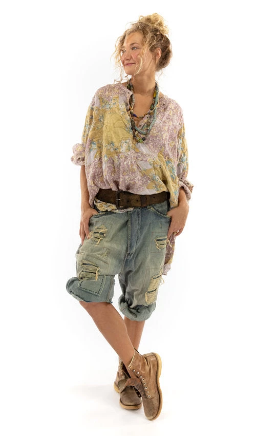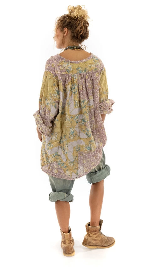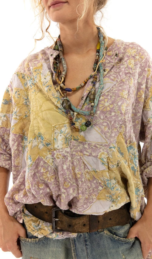 European Cotton Sunni Top with Quiltwork and Applique Details, Hand Distressing, Patching and Fading