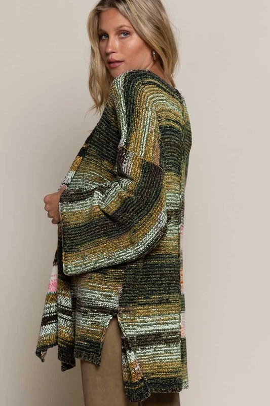 THIS SUPER COMFY SWEATER IS THE PERFECT ACCESSORY WHEN YOU WANT TO SIP HOT COFFEE ANND GET LOST IIN YOUR FAVORITE BOOK. COLORFUL,RICH AND LUXURIOUS, YOU WON’T WANT TO TAKE IT OFF! SIMPLY STUNNING!