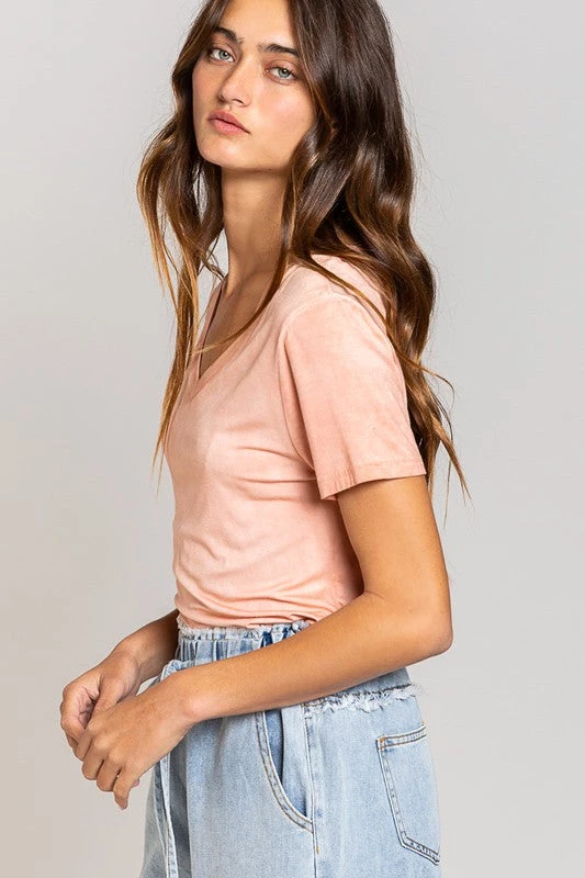 Be the first to review “POL POWDER PEACH V-NECK SILKY TEE TOPS” Cancel reply