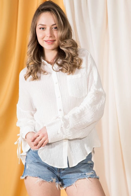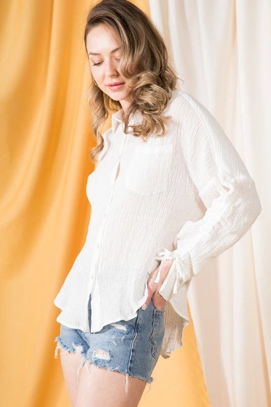 – Textured gauze button down shirt