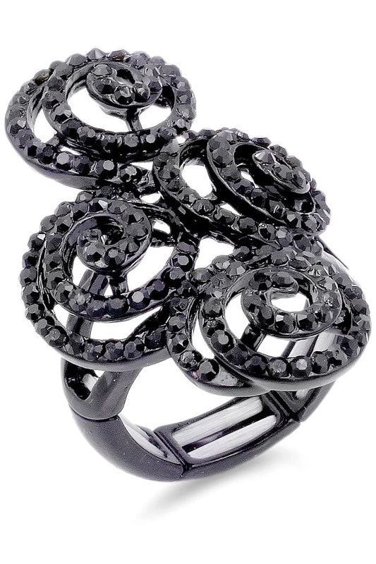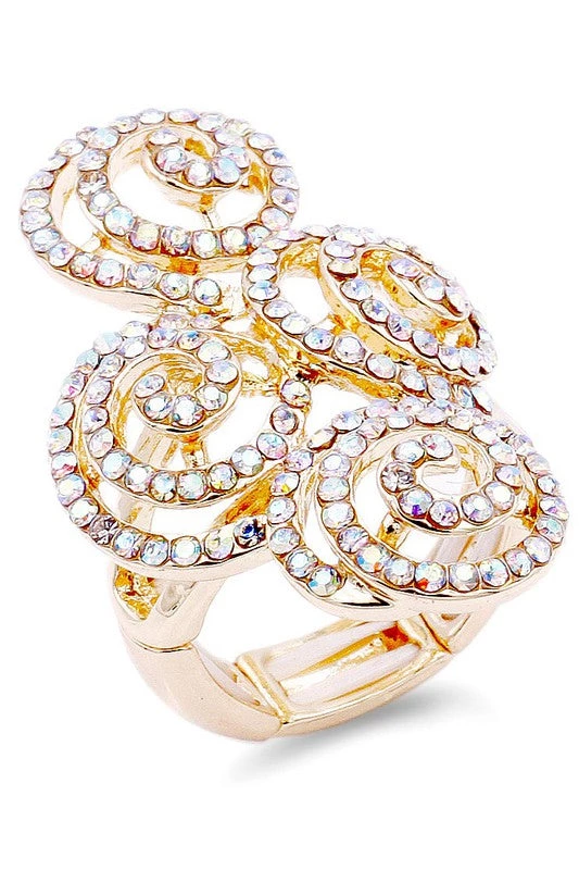 Size : 1.5" H Stretchable Lead and Nickel Compliant Swirl Metal Detailed Rhinestone Embellsiehd Stretch Ring
